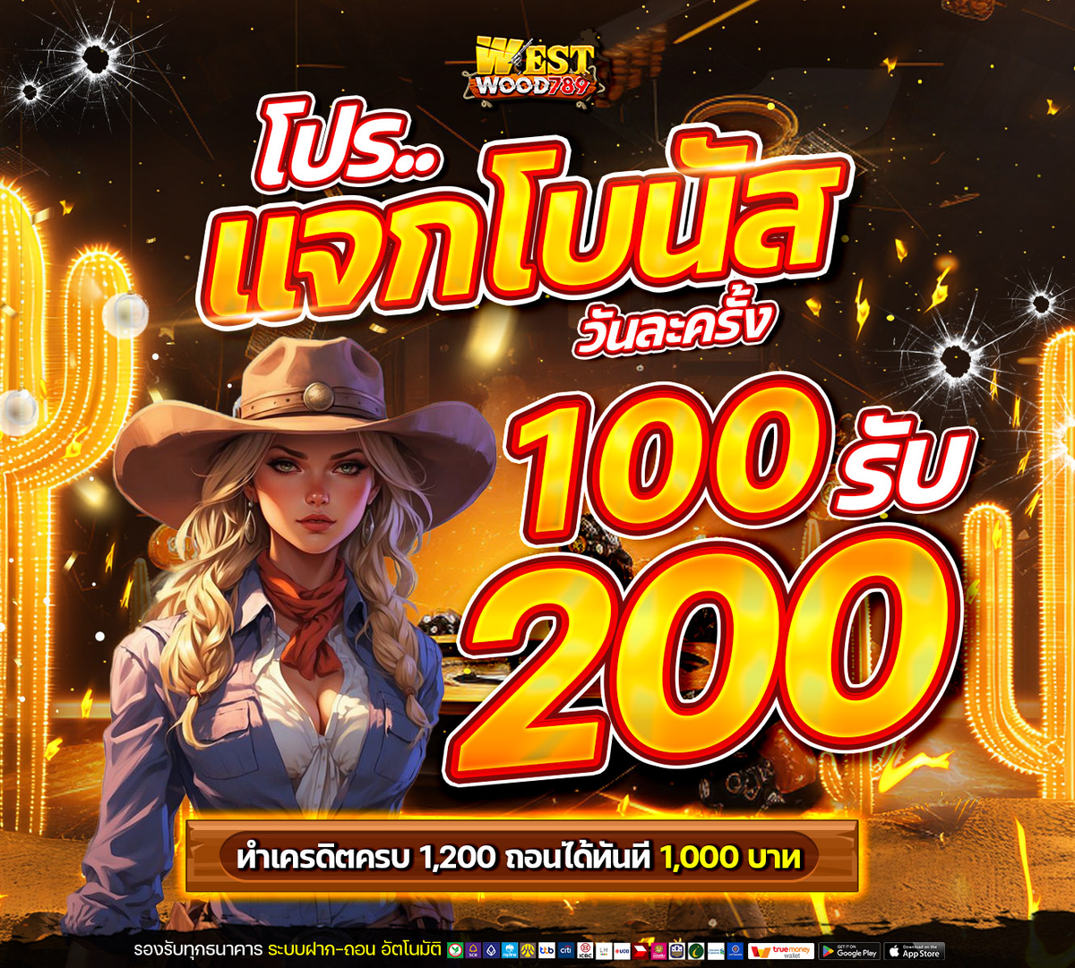 WESTWOOD789🤠 โปรโมชั่นแจกโบนัสวันละครั้ง 100 รับ 200