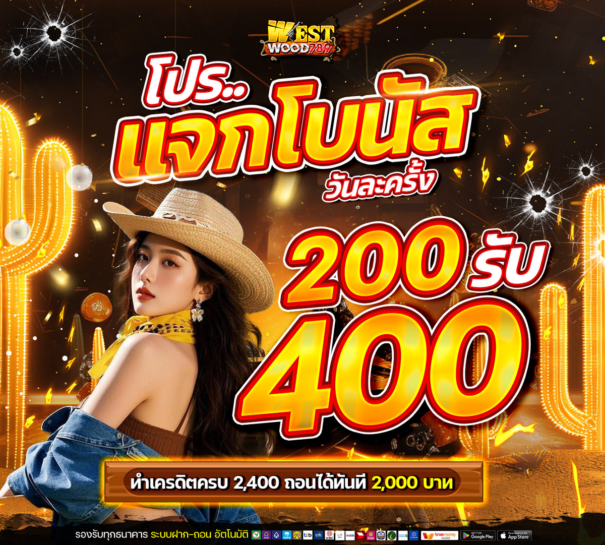 WESTWOOD789🤠 โปรโมชั่นแจกโบนัสวันละครั้ง 200 รับ 400